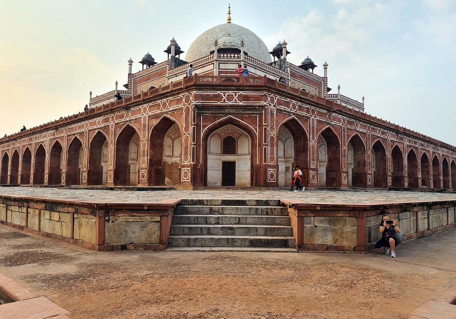 Гробница второго Могола, сына Бабура Хумаюна (правил в 1530-1556 годах) — еще плов. Он продолжает архитектурную концепцию самаркандского Гур-Эмира, который когда-то был окружен «райским садом». Архитектором мавзолея Хумаюна был Мирза Гияс из Герата, которого вдова императора Хаджи Бегум привезла в Индию по возвращении из хаджа. Но тимуридские черты вроде двойного купола и айванов уже разбавлены индийскими — красным и желтым песчаником в сочетании с белым мрамором и чатри.