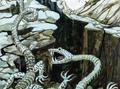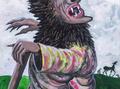 Характерно, что доисламская тюркская мифология особенно интересует художников из Кашкадарьи — обширного региона Узбекистана, где жизнь людей, как и сотни лет назад, близка к природе, и бытовой уклад сохраняет множество древних традиций. Год назад «Фергана» рассказывала об интересном опыте исследования мифологии, предпринятом художником из Китаба Эльнуром Эгамовым. Но в его работах изображался в основном «верхний слой» тенгрианского пантеона — божества и божки древних тюркских небес. А бестиарий его земляков, писателя Шерзода Комила Халила и художника Чори Шамса, рассказывает о множестве других мифологических существ, блуждавших в подсознании предков по его самым отдаленным и мрачным уголкам.