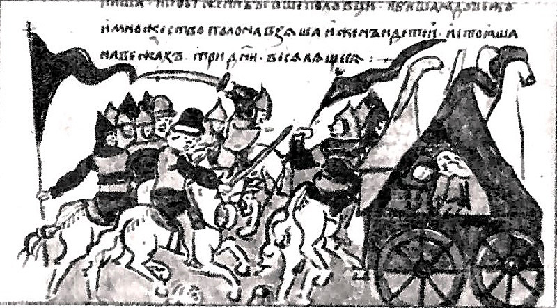«Русы поднялись по Днепру до его верховьев и перетащили ладьи в Оку. По Оке и Волге Святослав и дошел до столицы Хазарии — Итиля. Союзниками Святослава в походе 964-965 годов выступили печенеги и гузы. Печенеги, сторонники Византии и естественные враги хазар, пришли на помощь Святославу с запада. Их путь, скорее всего, пролег у нынешней станицы Калачинской, где Дон близко подходит к Волге. Гузы пришли от реки Яик (Урал), пересекши покрытые барханами просторы Прикаспия. Союзники благополучно встретились у Итиля».