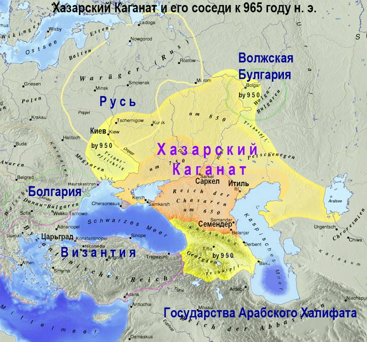На западе границы огузской конфедерации постепенно достигли земель, которые контролировались Хазарским каганатом с центром в нижнем Поволжье. Это государство хоть и оставалось серьезным игроком, уже миновало зенит своей славы и могущества. С запада его теснили русы, а на севере все чаще неповиновение выказывала Волжская Булгария. Там местные элиты в поисках союзников на юге приняли ислам, что еще больше обострило их отношения с хазарской верхушкой, где, в свою очередь, боролись две группировки — мусульманская и иудейская, к которой принадлежали и сами цари (каганы).