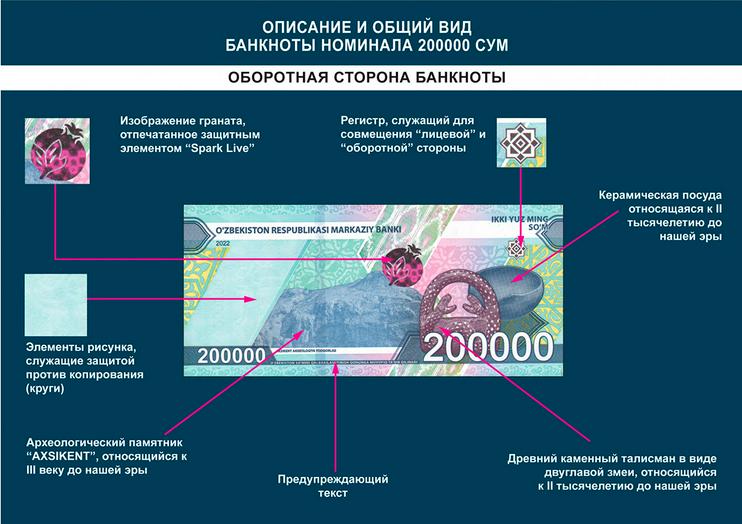 С 15 июля в Узбекистане в обращение поступит новая банкнота – номиналом 200 тысяч сумов ($18,3). Об этом сообщила пресс-служба Центрального банка республики.