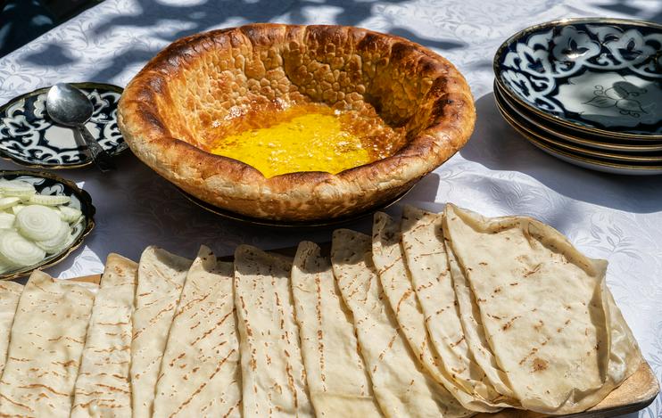 По горной дороге из Заамина к Зааминскому национальному парку можно увидеть десятки придорожных чайхан, где подают традиционное мясное блюдо тандыр-кабоб — большие куски жирной баранины, запеченные на можжевеловых углях и накрытые свежими хвойными ветками арчи. Но, оказалось, что символ гастрономического туризма в этом регионе другой. Ведь тандыр-кабоб готовят во множестве уголков Узбекистана, каждый из которых оспаривает пальму первенства у других.